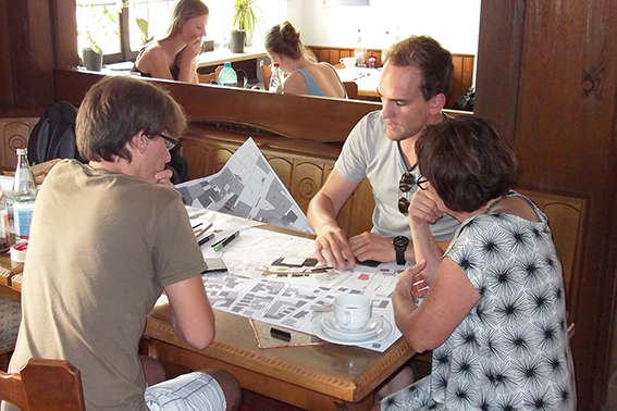 Unter Anleitung durch Professorin Cornelia Bott von der Hochschule und Stadtbaumeister Tobias Blessing wurden zuerst in einem Maßstab von 1:500 grundlegende Ideen für die Platzgestaltung und die Einbindung geschaffen. Der zweite Tag stand dann ganz im Zeichen der Detailplanung in größeren Maßstäben. Im Maßstab 1:200 wurden Pflasterübergänge dargestellt und Wirkungen der unterschiedlichen Materialien erörtert. Schließlich wurden diese Detailpläne zusammen mit den grundlegenden Überlegungen zu Kollagen zusammengeführt und den anwesenden Gerlachsheimer Bürgerinnen und Bürgern sowie den Kommilitonen präsentiert.