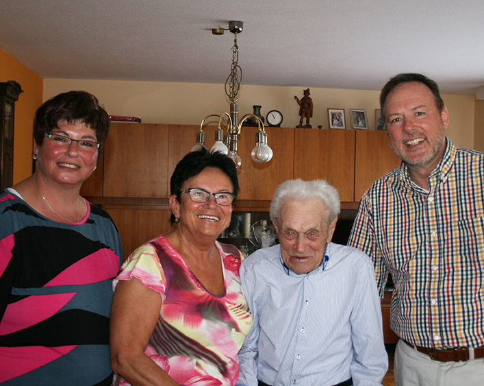 Bis Oktober 2013 lebte der Jubilar bei seinem Sohn in Messelhausen und konnte bis dahin noch im eigenen Garten arbeiten. Nach einem Krankenhausaufenthalt zog er dann zu seiner Tochter Marta Kimmelmann nach Markelsheim. Dort erfreut er sich bei zufriedenstellender Gesundheit besonders an den Besuchen seiner fünf Enkel und neun Urenkel. Als langjähriger Mitarbeiter der Firma Konrad-Bau in Gerlachsheim besuchter er im Mai dieses Jahres als Ehrengast die Feierlichkeiten zum 100-jährige Firmenjubiläum.