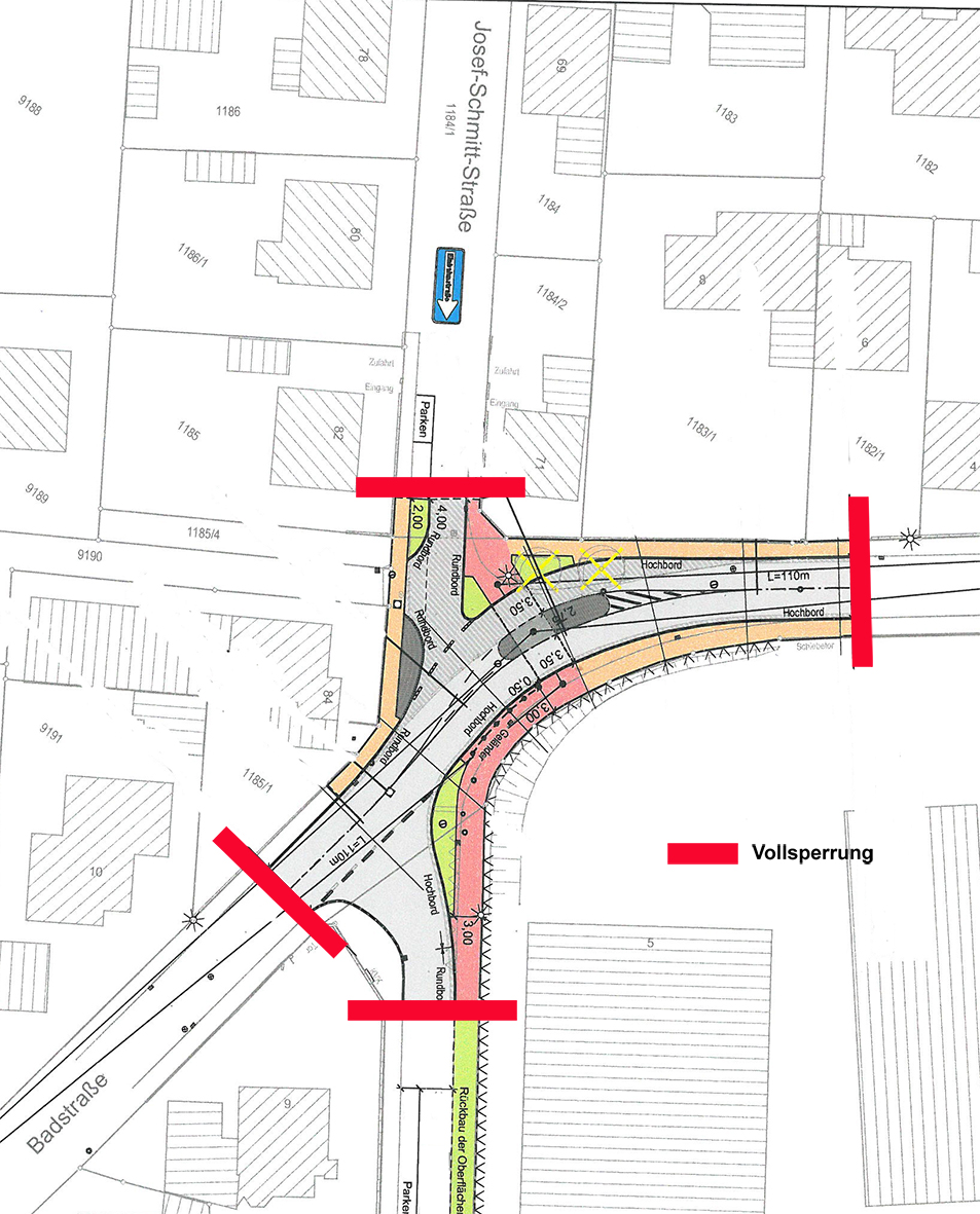 Kommende Woche beginnen die Bauarbeiten der Radfahrfurt in der Badstraße Lauda. Um diese Maßnahme zügig durchführen zu können, ist eine Vollsperrung des Kreuzungsbereichs Josef-Schmitt-Straße/Badstraße, ab 02. März 10.00 Uhr bis voraussichtlich spätestens 30 April, notwendig.