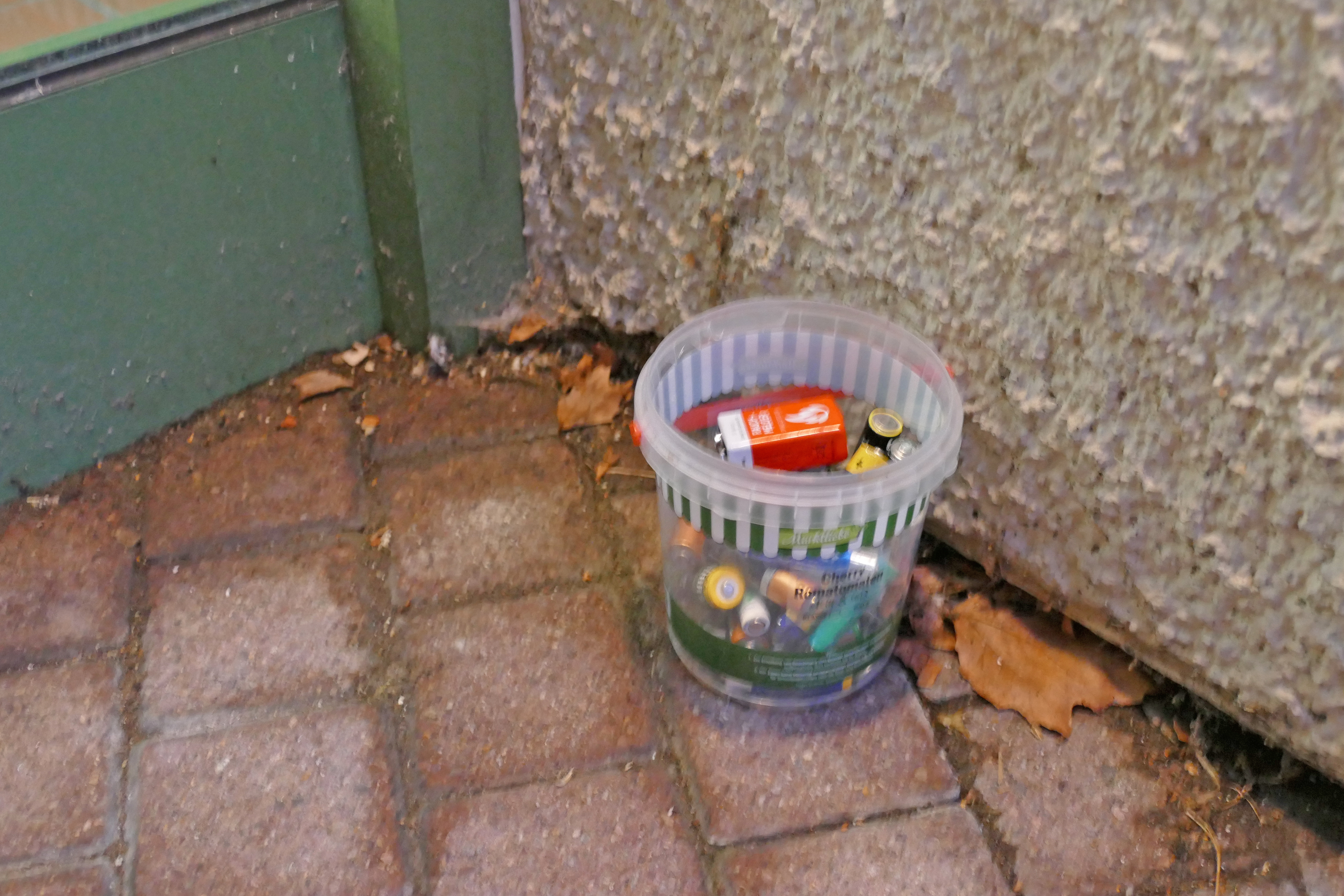 Leider wurden wiederholt ganze Sammlungen von Altbatterien vor dem Rathauseingang abgestellt.