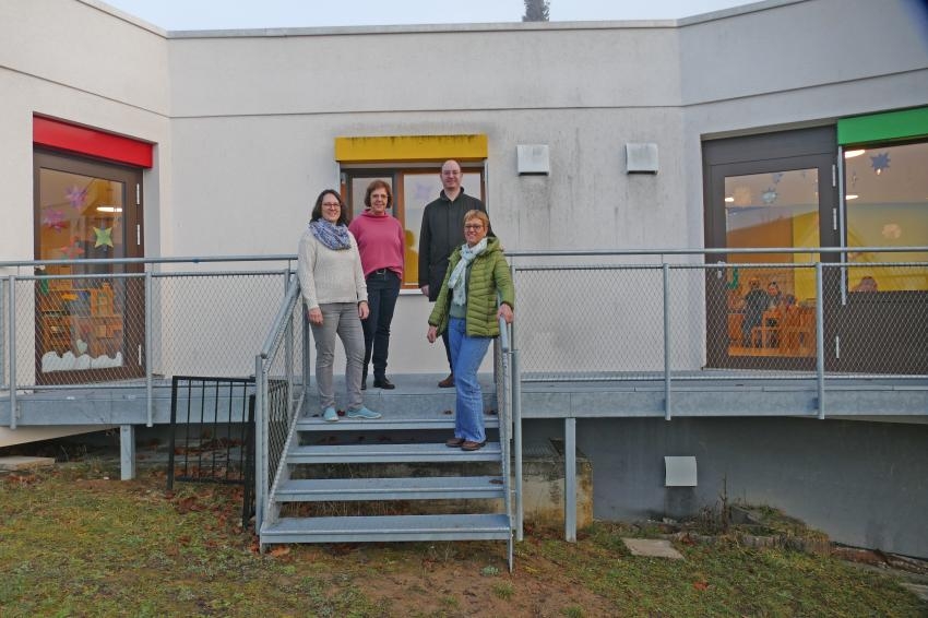 Bei einem Ortstermin informierten sich Bürgermeister Dr. Lukas Braun und Sabine Baumeister, Leiterin des zuständigen Fachbereichs der Stadt, gemeinsam mit Kita-Leiterin Martina Mohr und Ulrike Merkert als Vertreterin des Trägers über die umgesetzten Maßnahmen. Träger des Kindergartens ist die katholische Kirche, der auch das Gebäude gehört.