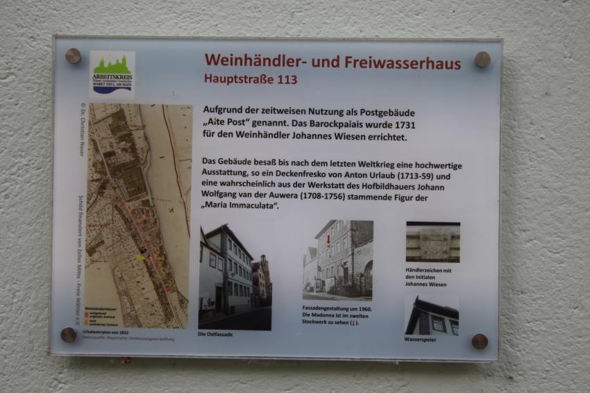 Das beeindruckendste Weinhändlerpalais wurde 1742 bis 1744 von Balthasar Neumann für Andreas Wiesen in der Hauptstraße 18 errichtet. Auf dem Katasterplan von 1832 ist eine freistehende Dreiflügelanlage am südlichen Ortsende von Zell zu erkennen. Während sich der kleine Hof zur Straße hin öffnet, wird der im Osten anschließende, auf zwei Etagen angelegte Garten im oberen Bereich von einer Brunnenanlage in Vierpassform dominiert. Den unteren Gartenteil schließt die Mauer der Anlegestelle am Main ab.