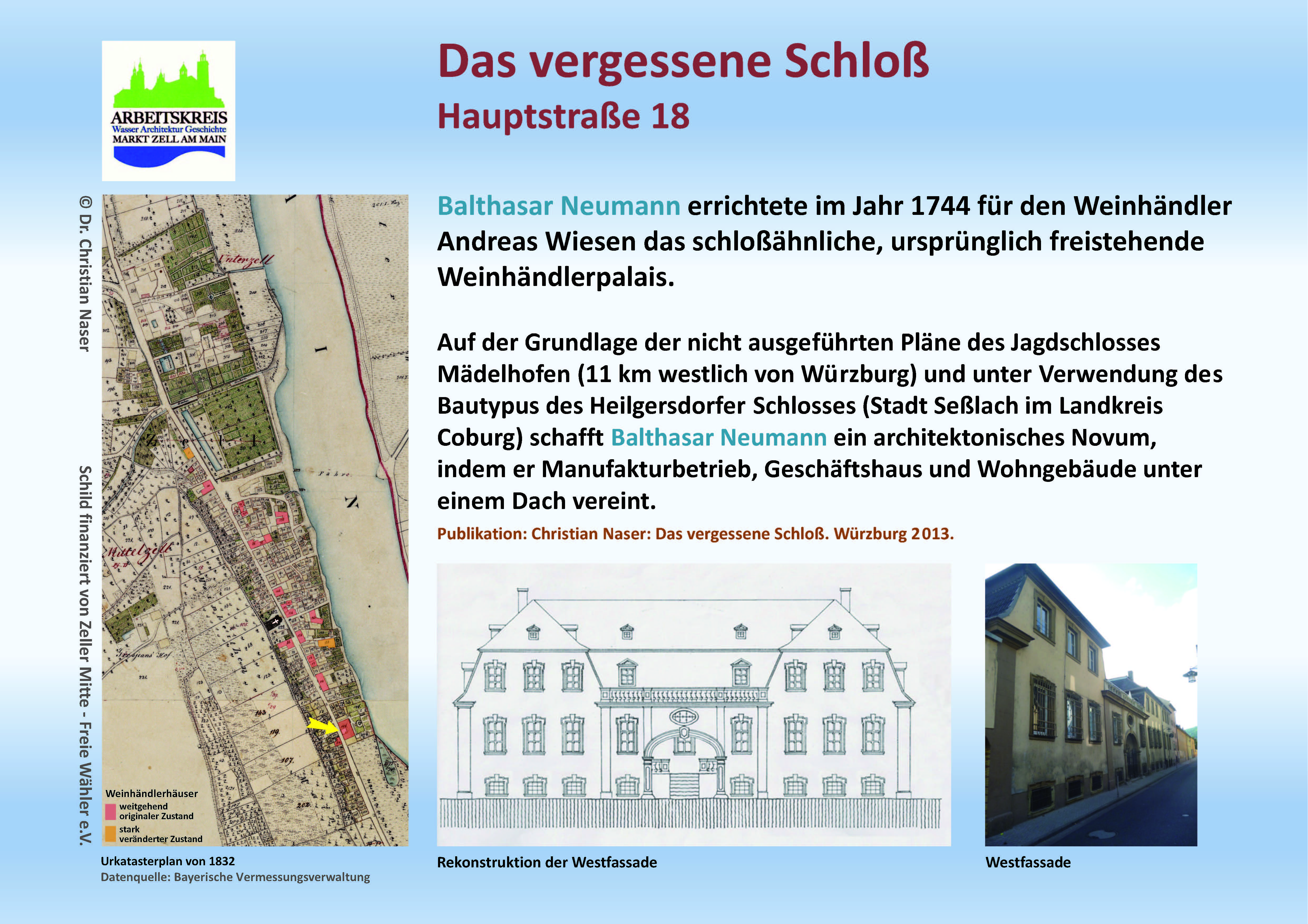 Dr. Christian Naser, Die Zeller Weinhändlerhäuser und Balthasar Neumanns vergessenes Schloss. Hrsg. Zeller Mitte -Freie Wähler e.V., Zell 2023, S. 17.