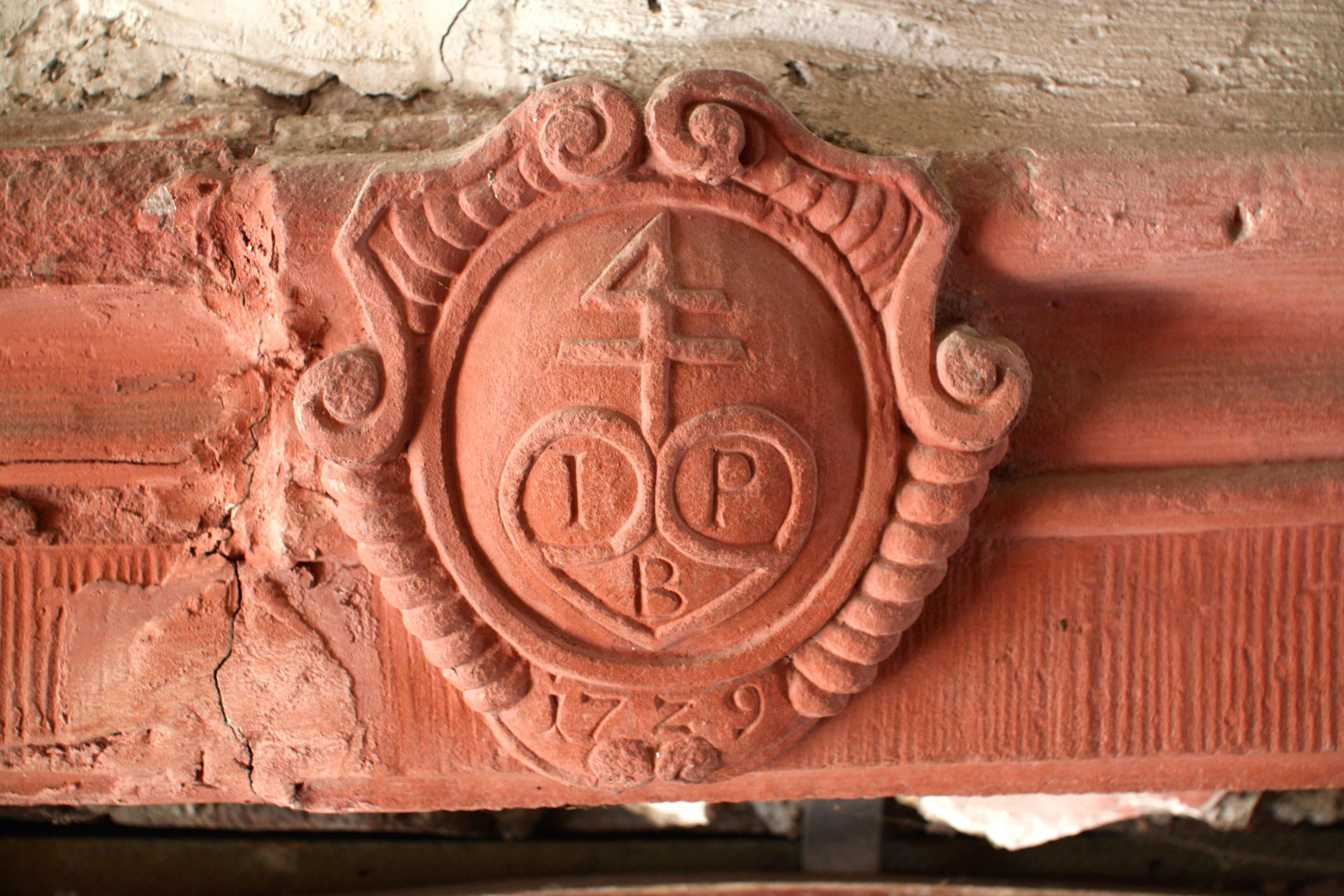 Wappen vom Sturz über dem Eingang zum Buchlerschen Weinhandelshaus (1729)