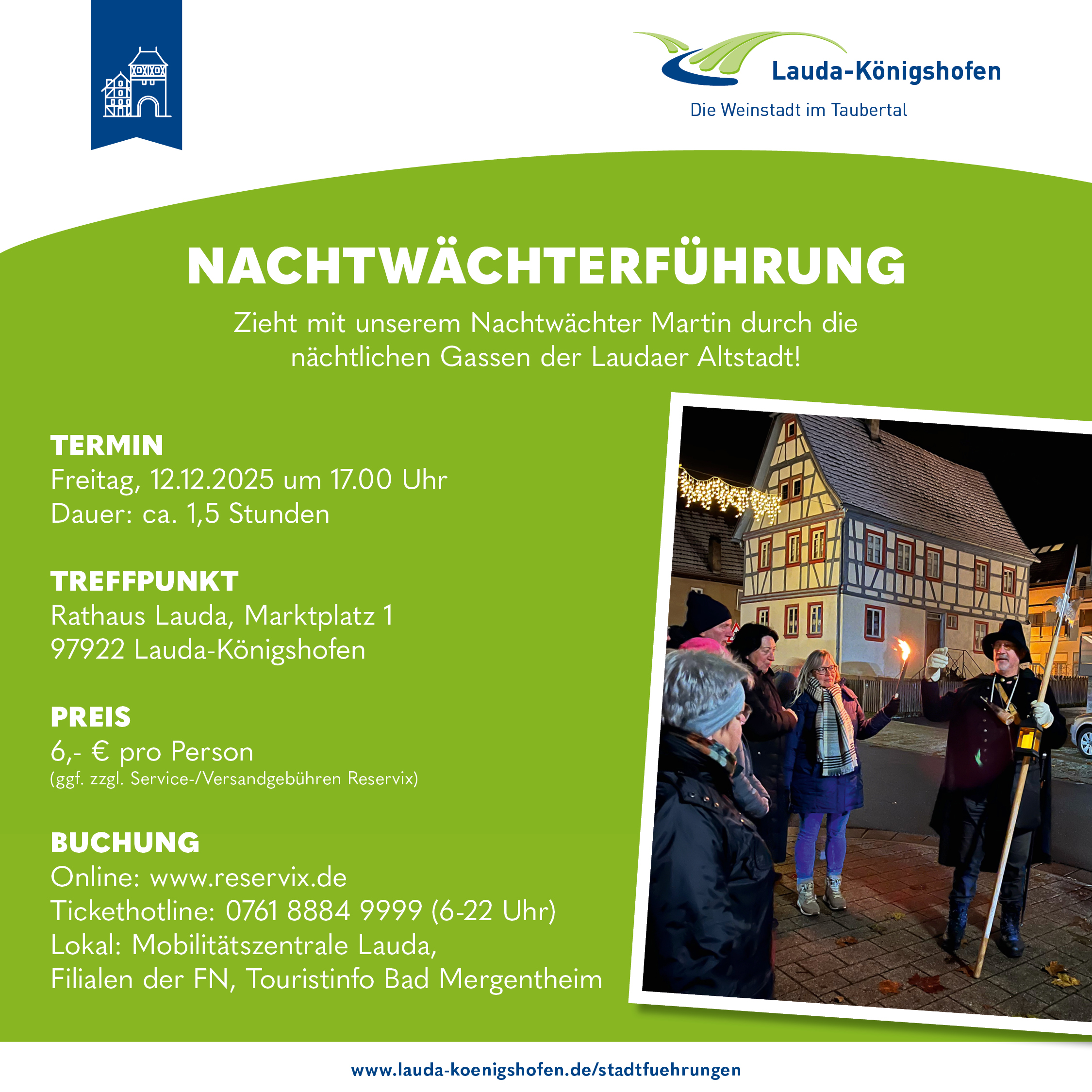 Karten für die nächste Nachtwächterführung erhalten Sie ab sofort über die Ticketportale: