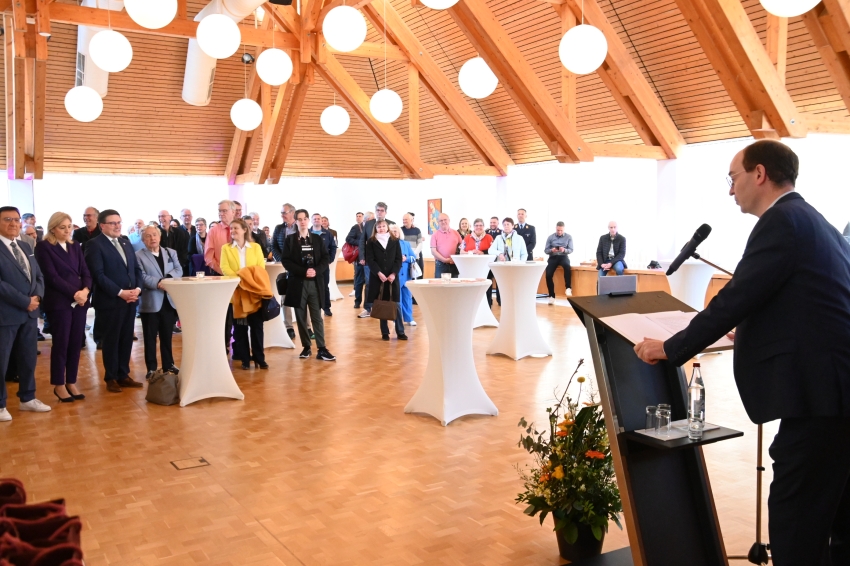 Zahlreiche Ehrengäste aus Politik, Kirche, Gesellschaft und Partnerschaft waren der Einladung gefolgt. Neben dem Vizepräsidenten des baden-württembergischen Landtags, Prof. Dr. Wolfgang Reinhart, und Bundestagsabgeordneter Nina Warken begrüßte Dr. Braun auch Landrat Christoph Schauder – augenzwinkernd mit dem Hinweis, dieser wähle seine Termine nach der Qualität der Blasmusik aus. Und die war beim Bürgerempfang bestens vertreten: Die Heckfelder Musikanten, die am Abend ihr 40-jähriges Bestehen feiern, sorgten für musikalische Glanzpunkte.